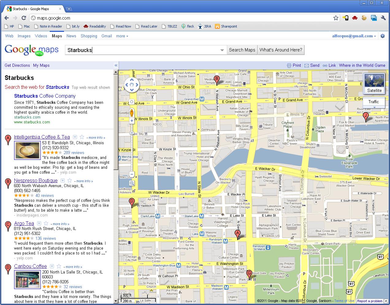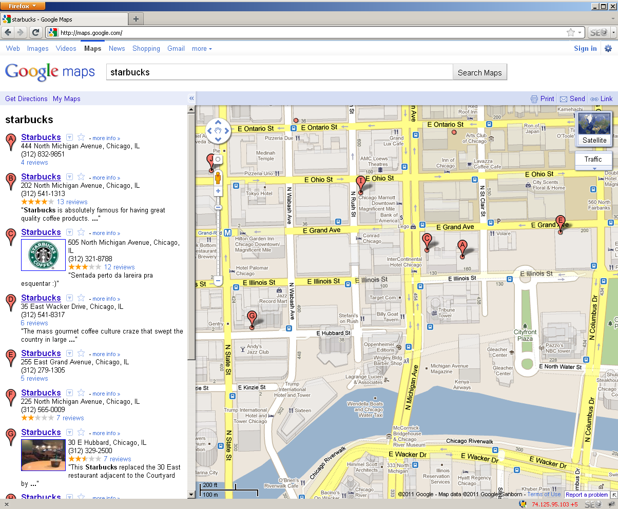 Very odd thing happened when I searched my maps.google.com for "starbucks:" no Starbucks locations appeared. This is only happening to my maps; did I do something to omit Starbucks from Google Maps?